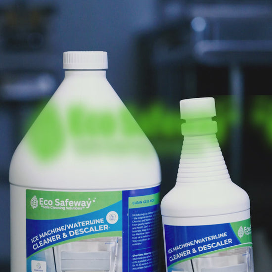 Ensure your ice machine meets food safety standards with Eco Safeway’s ice machine cleaner. Our eco-friendly cleaning solution is safe for nickel, chrome, and stainless steel surfaces while effectively removing calcium buildup, slime, and biofilms.